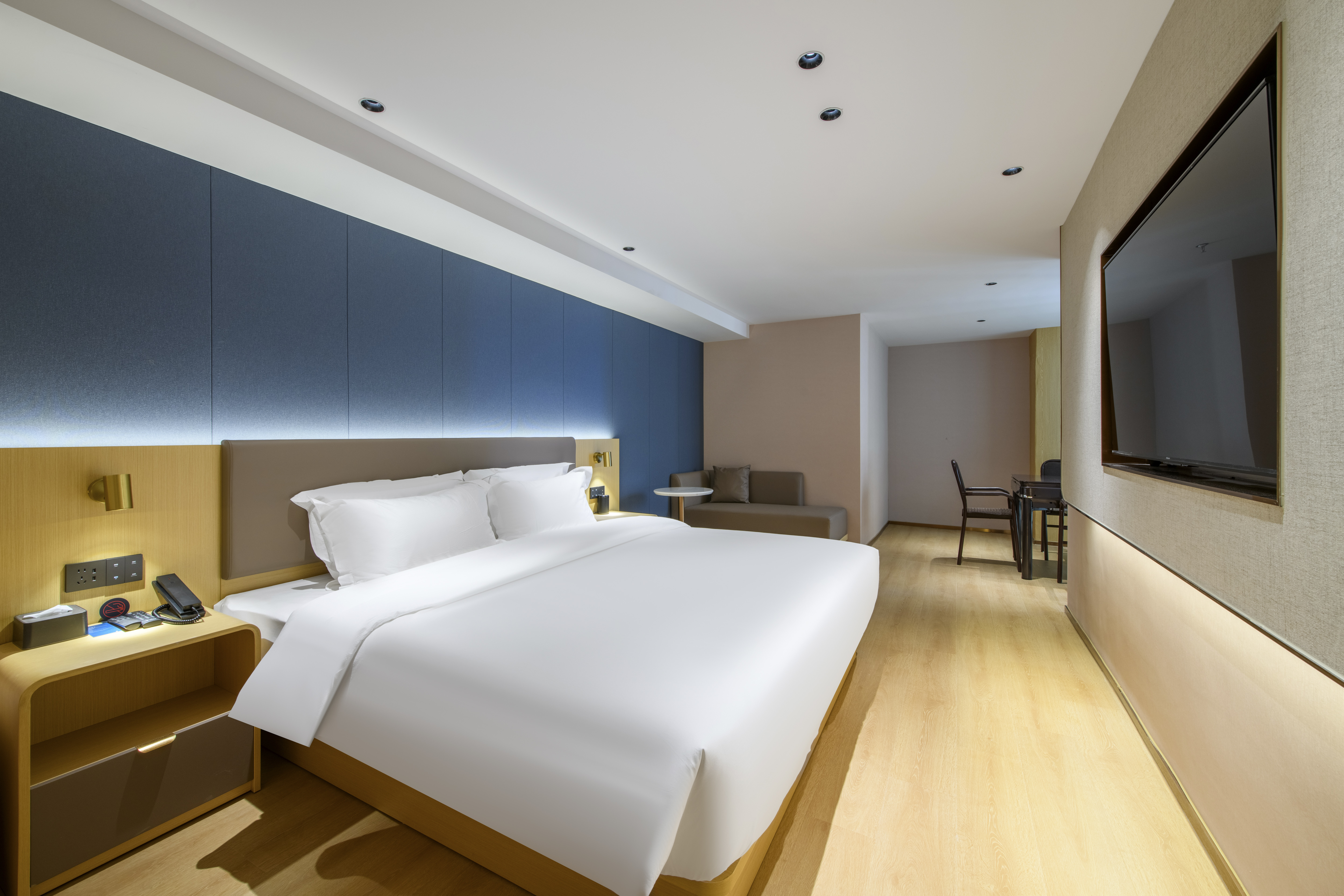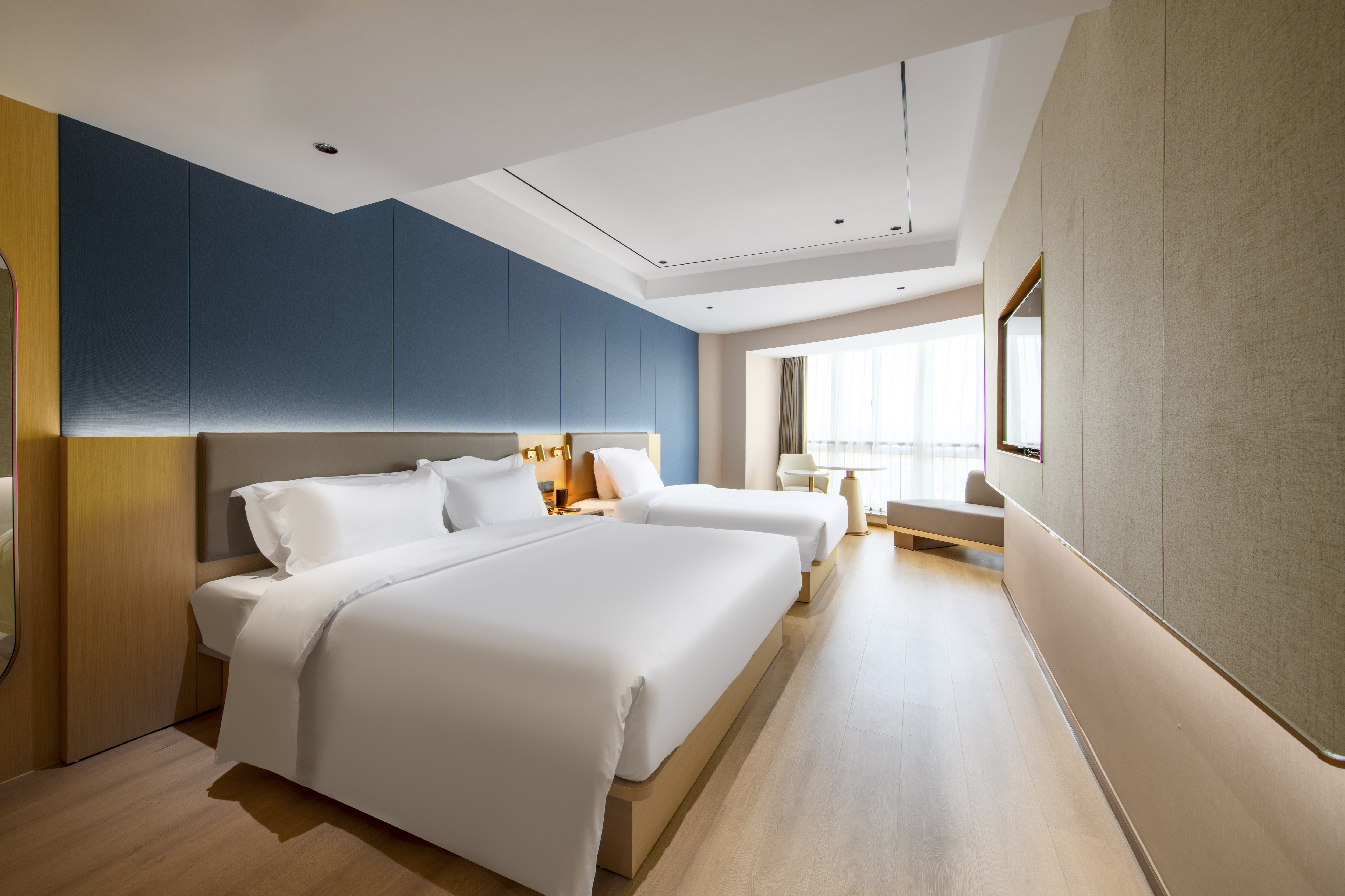 Delight Twin Room (Night Sky View + Morandi Color Scheme + Mini Fridge + Xiaodu Smart Control + High-Speed Negative Ion Hairdryer + 4K Hd Projection)